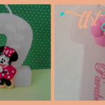 Sapatinho em Eva com autocolantes (o meu batismo e chucha, cruz ou sapatinho), cara da Minnie de lado (ou outro motivo) e mini dezena.